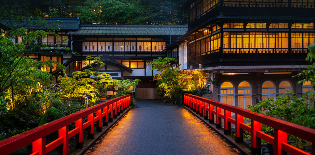 四万川の美しい清流と自然に囲まれた温泉街は、歩いているだけでも癒されます。特に人気なのが「積善館」。ジブリ映画のような雰囲気の建物は、写真スポットとしてもおすすめです。