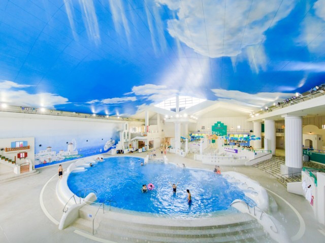 ユネッサンは、水着で楽しめる温泉テーマパーク。