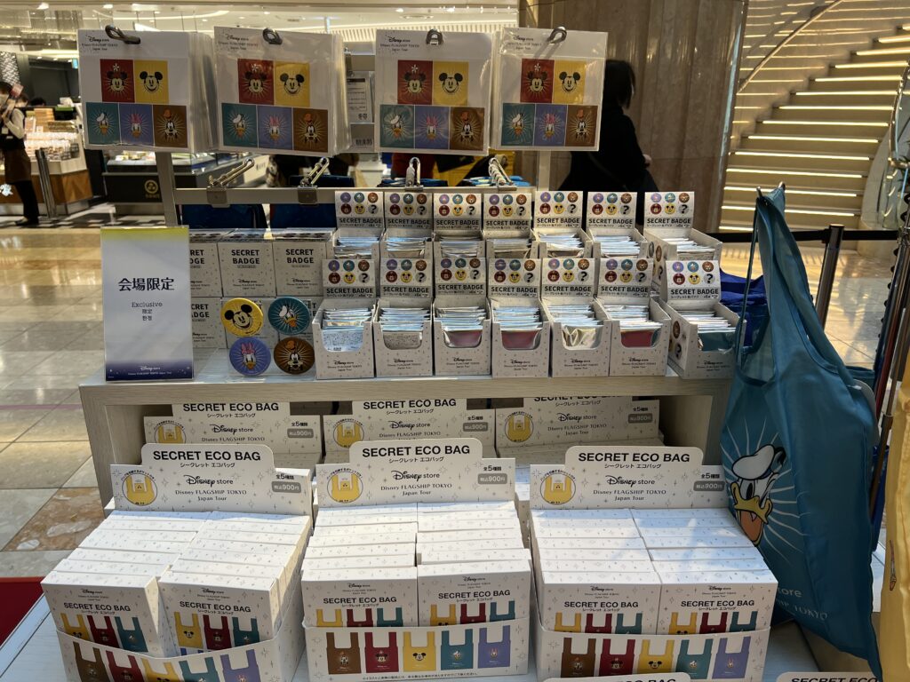↑(どちらも会場限定)上段:ステッカー、中段:シークレットバッジ税込700円、下段:シークレットエコバッグ税込900円