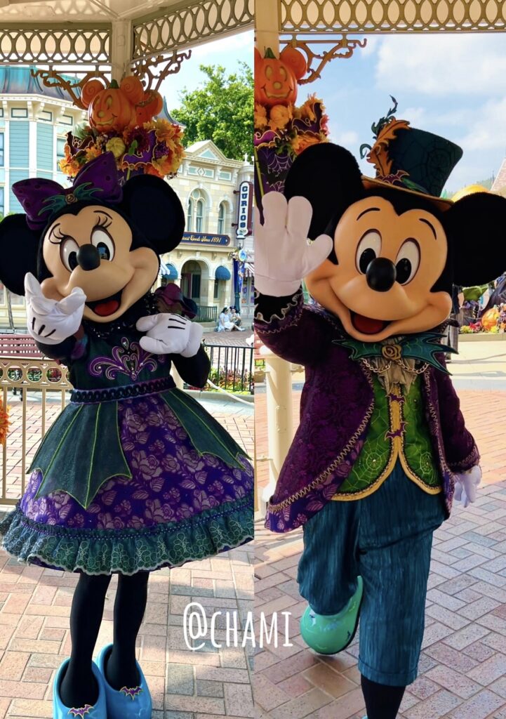 私が訪れたのはちょうどハロウィン期間だったため、キャラクターたちは20周年仕様ではなく、ハロウィンコスチュームで登場していました。