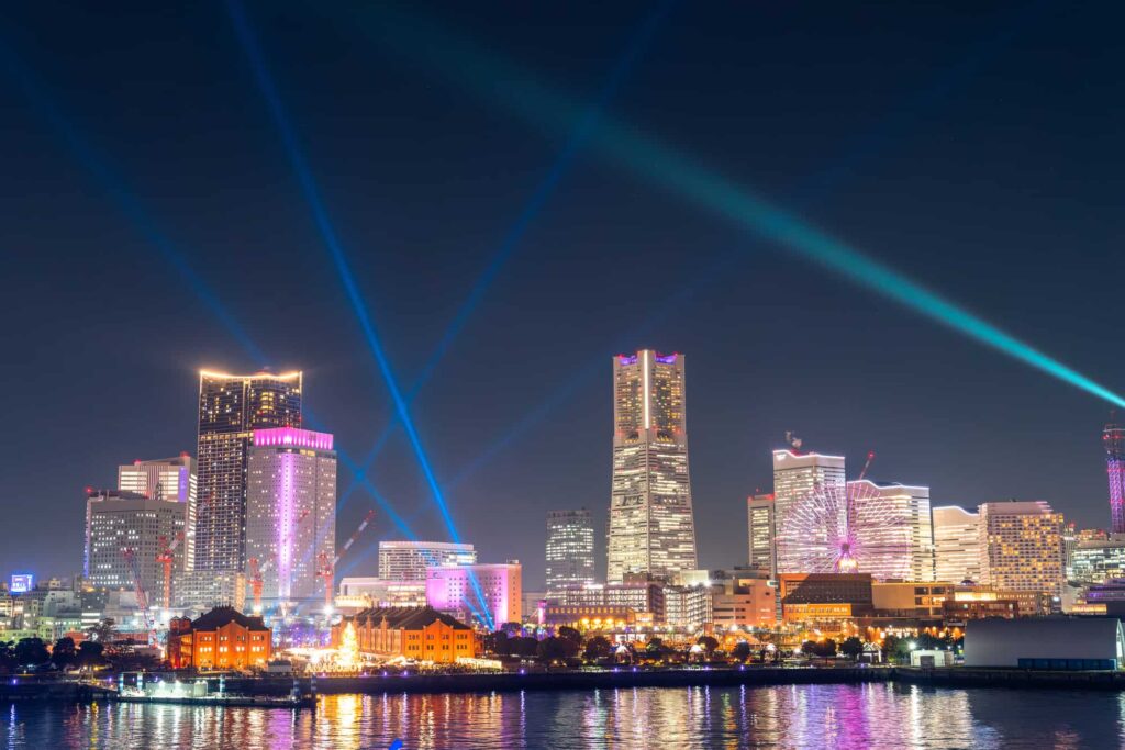 横浜や湘南などの港町エリアでは、イルミネーションの光が海面に反射して輝く幻想的な景色が広がります。