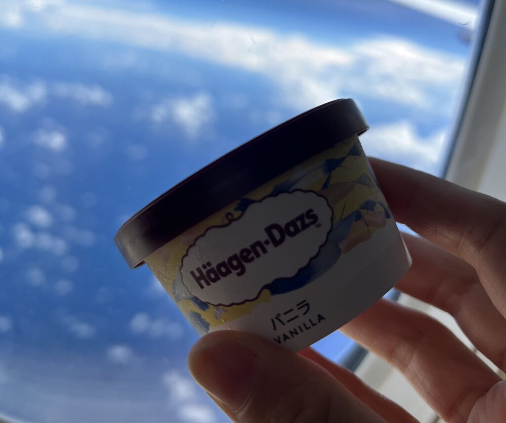 ↑デザートのハーゲンダッツアイスクリーム。(味はバニラのみ)