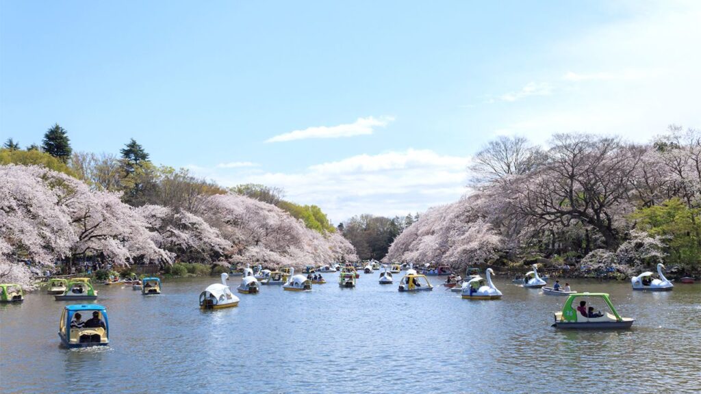 井の頭恩賜公園は、池の周りに桜が咲く美しいスポットです。